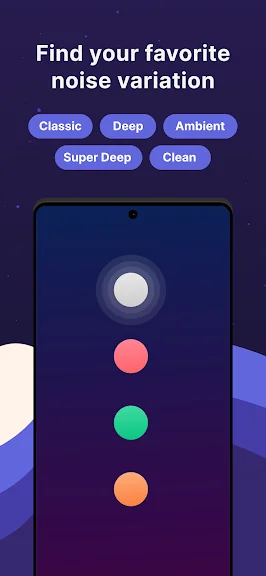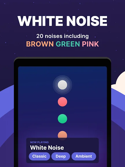 Noise Machine은 네 가지 "색상"을 특징으로 하는 프리미엄 사운드 머신 앱입니다.