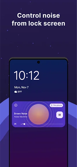 밤에 교통 소음이나 파트너의 코 고는 소리 등 방해가 되는 소리 때문에 잠을 이루기 힘드십니까? Noise Machine의 수면 소리는 이러한 소음을 가려서 자연스럽게 잠을 잘 수 있도록 도와줍니다. 브라운 노이즈와 그린 노이즈는 특히 효과적인 수면 소리입니다. 백색소음은 수면 중 이명 관리에 도움이 될 수 있습니다.