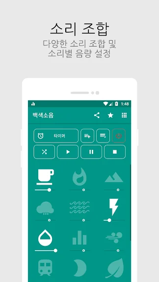 수면을 위한 부드러운 소리 (백색 소음)로 얼마나 쉽게 잠들 수 있는지 시도해보세요. 아마도 놀라실 겁니다. 나만의 사운드 믹스를 선택하고 결합하여 스트레스를 해소하거나 집중력을 높일 수 있습니다. 타이머를 설정하면 전화기 배터리 걱정은 하지 않아도 됩니다. 일정 시간이 지나면 타이머가 작동하여 소리를 서서히 끌 것입니다.