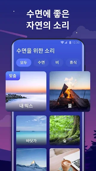 아래는 수면 사운드 백색 소음 어플에 대한 스크린샷 정보입니다.