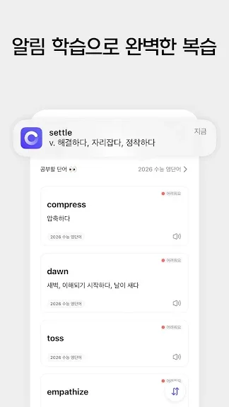 • 원하는 시간에 단어 알림을 받을 수 있어요.