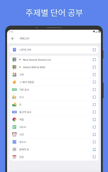 • 영어사전 속 수천 개의 영어 단어와 영어 구를 카테고리로 나우었어요.