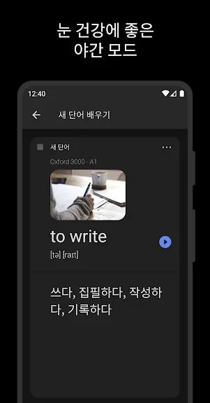 • 자신만의 플래시카드를 추가하고 쉽게 단어를 외우세요. 번역, 발음기호, 사진 그리고 예문 등이 자동으로 채워져요.
