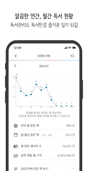 - 차트와 달력으로 만나는 연간, 월간 독서 통계 및 내역