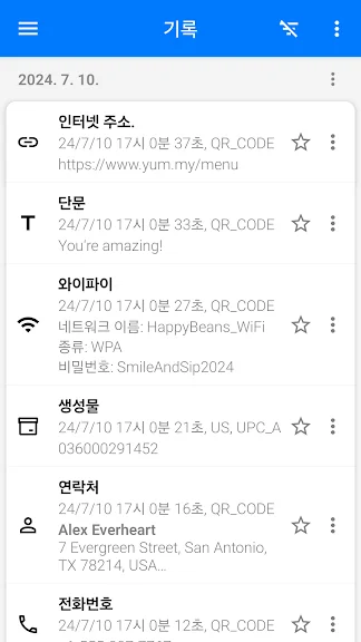 - 스캔 기록이 저장되어 언제든지 이전에 스캔한 QR 코드나 바코드를 확인할 수 있습니다.