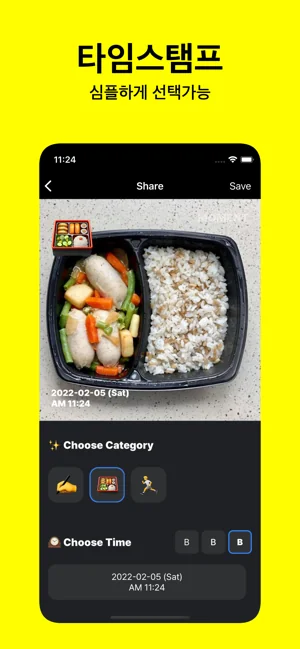 2) 아이폰 타임스탬프 - 식단, 운동, 인증샷 카메라 어플 스크린샷