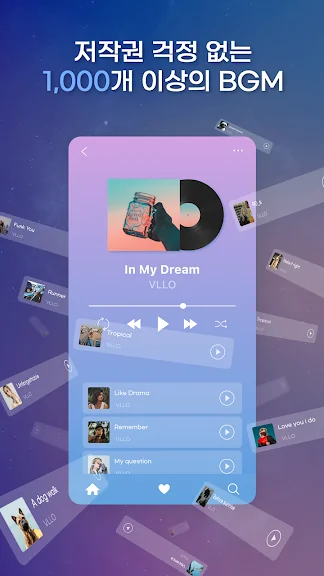 VLLO가 특별한 이유는 강력한 올인원 기능에 있습니다. 다양한 영상 효과, 수천 개의 배경음악과 효과음, 그리고 세련된 필터와 트랜지션을 활용하여 원하는 분위기의 영상을 연출할 수 있습니다. 또한, 저작권 걱정 없는 음악과 스티커까지 제공되어 자유롭게 활용할 수 있습니다.