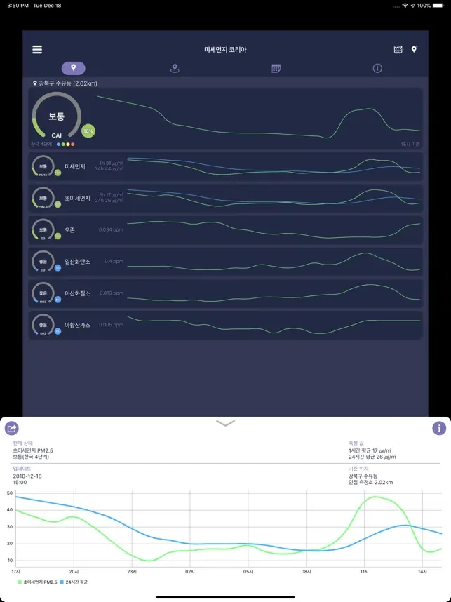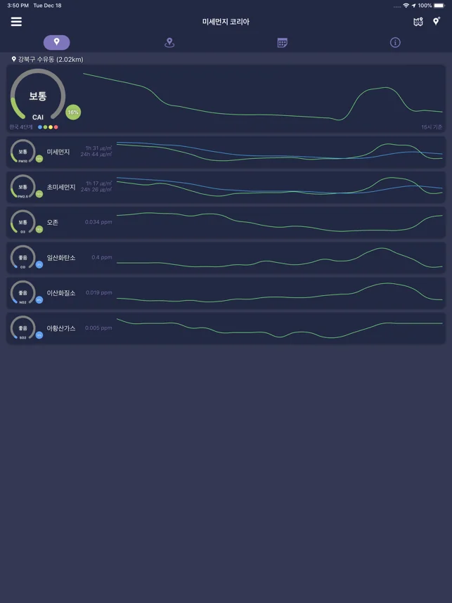 2) 아이폰 미세먼지 코리아 어플 스크린샷