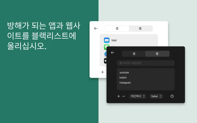 • 집중 방해를 막기 위해 앱과 홈페이지 차단