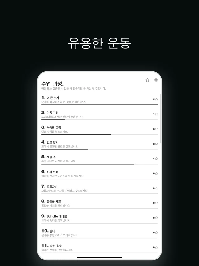 아래는 아이폰 집중력 훈련 어플 스크린샷 정보입니다. 집중력 훈련 어플 스크린샷 정보를 확인하고 싶으신분은 아래를 참고하시기 바랍니다.