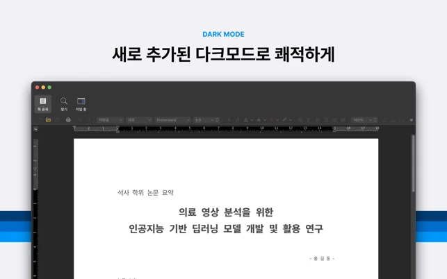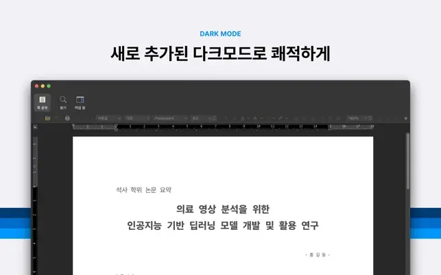 - 쪽 번호 매기기, 새 번호로 시작, 서식 복사 기능, 다양한 글자 서식, 세분화된 문단 모양 지원 등 Mac에서도 완벽하게 HWP 문서를 작업할 수 있습니다.