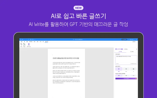 GPT4o, ChatGPT, Stable Diffusion 등 문서에 최적화된 다양한 AI 생성 도구와 함께 모든 문서 작업 효율을 높일 수 있습니다.