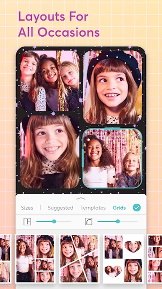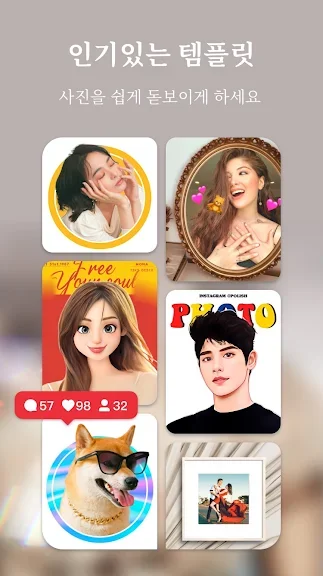 수 백개의 레이아웃으로 몇 초만에 사진 콜라주를 만드세요. 사진 격자 크기, 테두리, 배경을 사용자 정의하고 자신만의 레이아웃을 디자인할 수도 있어요! 정말 쉽게 아름다운 사진 콜라주를 만들 수 있습니다.