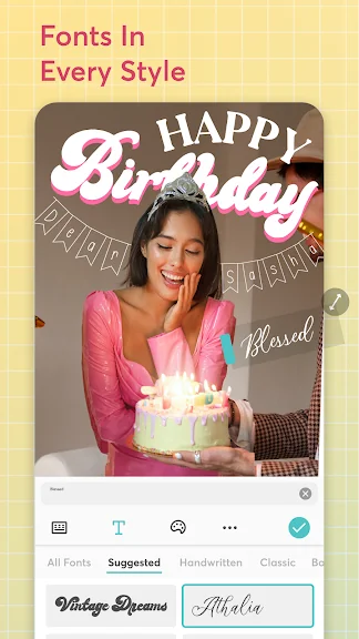 - 선택할 수 있는 많은 수의 배경, 스티커, 글꼴 및 낙서!