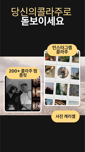 원하는 여러 사진을 선택한 후 여러 레이아웃으로 스티치 해서 사진 콜라주 만드세요. 콜라주는 아이디어와 추억을 보다 멋지게 공유하는 방법입니다. 필터, 스티커, 문자, 및 다른 효과를 사용해 사진 콜라주 꾸밀 수 있습니다. 콜라주 메이커는 사진 수정 및 콜라주 만들기를 위해 필요한 모든 것을 가지고 있습니다. 분명히 마음에 드실 멋진 사진 콜라주 도구임을 장담해요!
