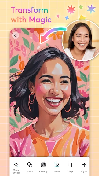 갤러리에서 사진을 가져 오거나 인앱 카메라로 촬영합니다. 사진에 전문적인 예술스타일을 부여하기 위해, 필터를 선택합니다. 가장 선명한 이미지를 얻기 위해, 밝기, 대비 및 채도로 톤을 조정합니다.