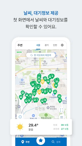- 대기환경 정보와 날씨예보를 확인할 수 있어요.
