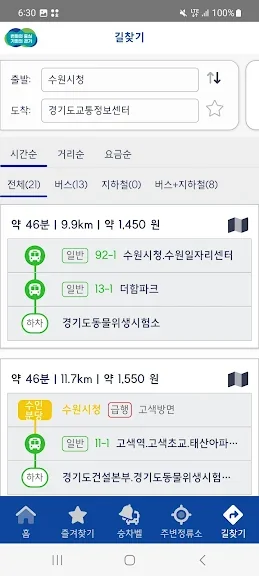 * 경로검색 결과 제공