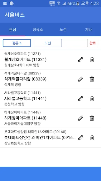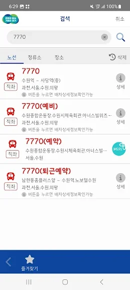 - 자주 이용하는 정류장 및 노선을 즐겨찾기로 등록
