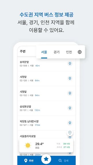 서울, 경기, 인천 등 주요 도시의 버스 정보를 확인할 수 있습니다.