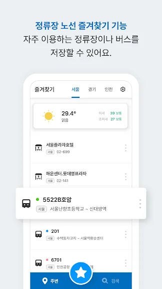 - 자주 이용하는 버스 정류장과 노선을 저장해 두고 편리하게 이용하세요.