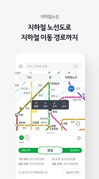 수도권, 광주, 대구, 대전, 부산 지하철 도착정보 및 길찾기 정보 확인 가능합니다.