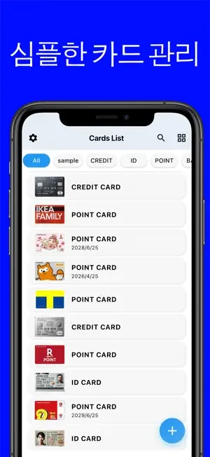 카드 관리 「카드 관리」는 신용카드, 포인트카드, 멤버십 카드 등 다양한 카드 정보를 스마트하게 한 곳에서 관리할 수 있는 앱입니다.
