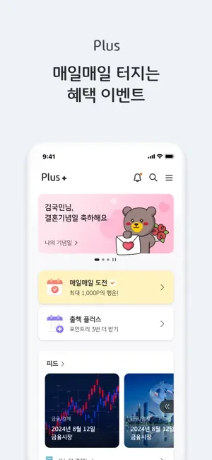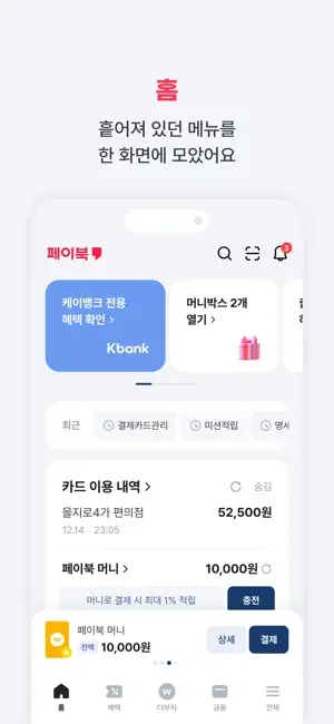 - 출석체크부터, 머니박스, 맞춤 혜택을 홈에서 한번에 확인해요.
