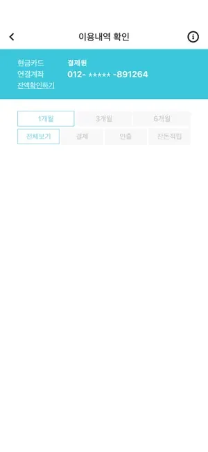 거래내역조회 : 모바일현금카드 거래내역을 조회