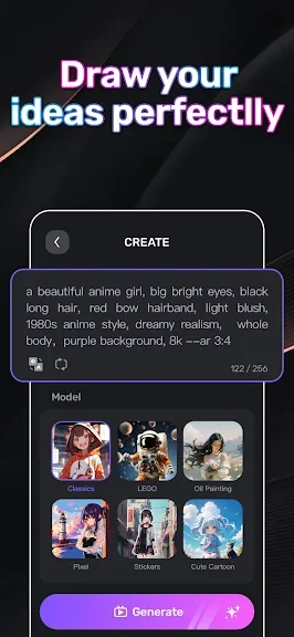 저희 앱은 정기적으로 새로운 스타일을 추가하여 시도해 볼 수 있도록 하여 아이디어와 예술적 요구에 대한 새로운 표현을 발견할 수 있는 무한한 가능성을 제공합니다. AI 아트 생성기를 사용하면 항상 탐색하고 생성할 새로운 것을 찾을 수 있습니다.