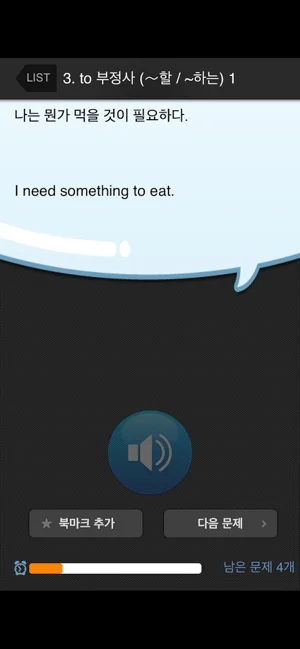 - 북마크 기능이 있어 원하는 문장을 따로 저장하여 집중 훈련할 수 있습니다.