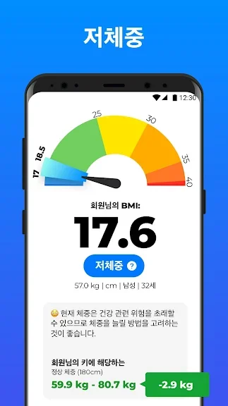 2) BMI 계산기 - 체질량지수 계산기 & 무게 일기 어플 스크린샷