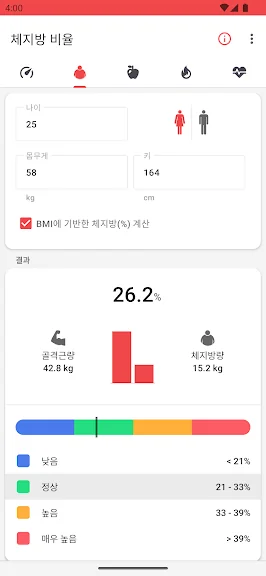 남성과 여성 모두에게 적합한 체지방 비율 계산기.