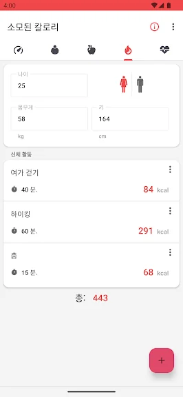 칼로리 계산기를 이용해서 일일 칼로리 소모량을 계산할 수 있다.