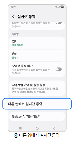 ※ 삼성 전화 앱 > 더 보기 > 설정에서도 실시간 통역 기능을 설정 할 수 있습니다.