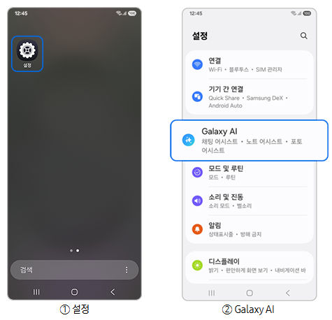1단계) 설정에서 Galaxy AI로 진입합니다.