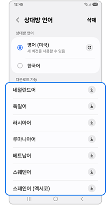 ※ 언어를 다운로드해야 하는 경우, 사용을 원하는 언어 옆에 있는 다운로드 아이콘을 선택해주세요. 다운로드가 완료되면 페이지 상단으로 이동하여 원하는 언어를 선택하세요.