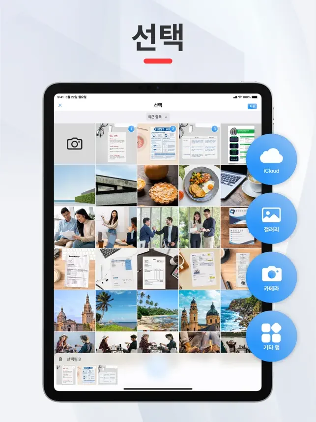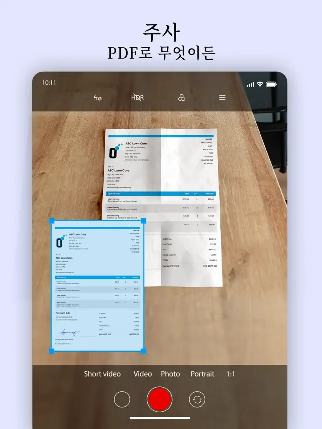 영수증, 청구서, 이력서, 메모, 양식, 신분증, 자격증 등을 카메라로 PDF로 변환하세요.
