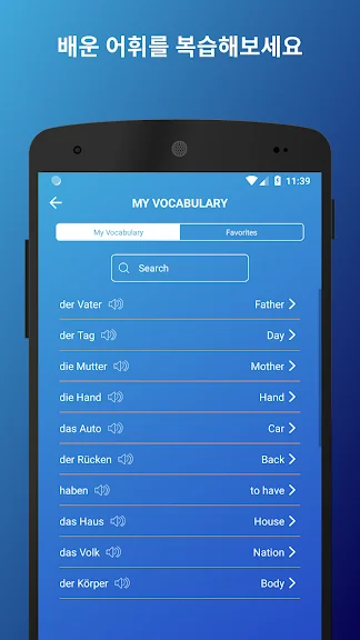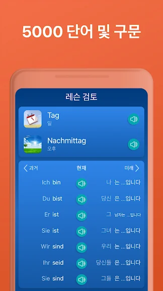 3500여개의 독일어 단어와 동사를 배우고 어휘력을 키워보세요. 가장 자주 쓰이는 독일어 단어들을 외우고, 단어의 발음을 들어보세요. 단어 게임, 문장 어구, 그리고 단어 목록을 통해 새로운 단어를 배워볼 수 있습니다.