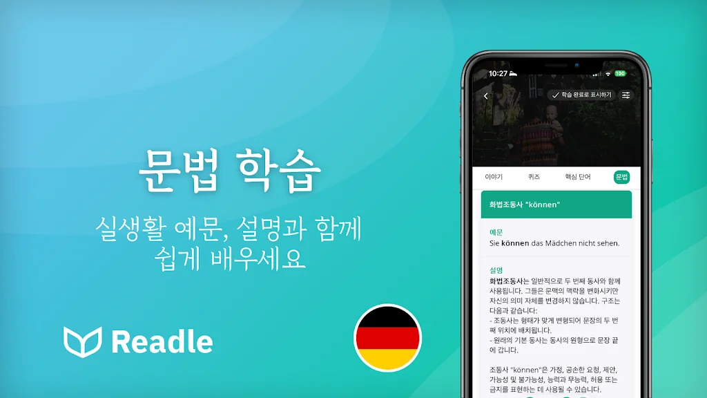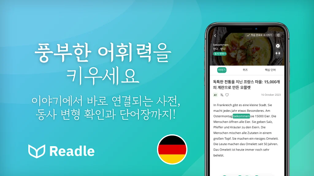 Readle독일어: 읽기, 듣기, 어휘, 사전 및 문법 어플을 만들어 주신 개발자님 감사합니다~