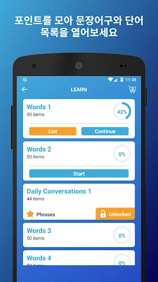 단어와 문장, 그리고 초급, 중급 및 고급 사용자를 위한 표현 학습을 통해 어휘력을 확장시켜보세요.