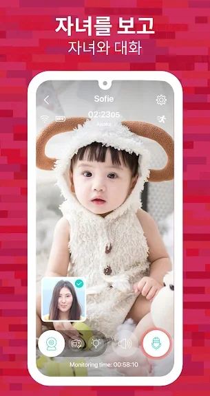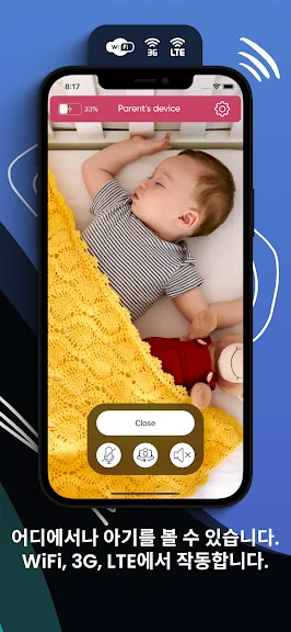 와이파이, 3G, LTE 네트워크를 통해 당신의 아기를 오디오/비디오로 모니터 하세요