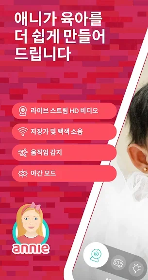 Annie Baby Monitor 어플에 대한 스크린샷 정보가 필요하시다면 아래 이미지를 참고하시기 바랍니다.