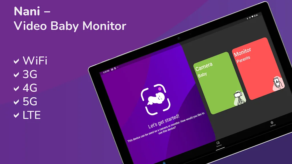Nani는 휴대폰 두 대만 연결하면 즉시 베이비캠(아기 모니터)으로 변신해, 집 안은 물론 외출·직장에서도 내 아이를 실시간으로 지켜볼 수 있는 육아 필수 앱입니다.