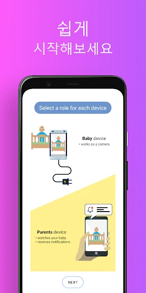 • 한 대의 스마트폰을 아기 옆에 놓고 "베이비" 역할을 선택하세요,