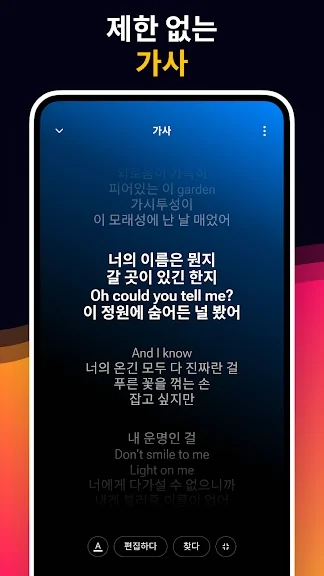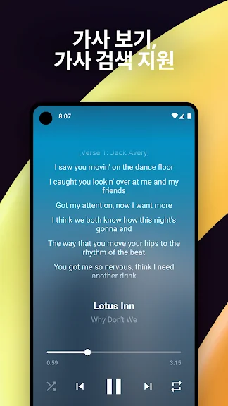 음악 파일의 태그에 포함된 가사를 플레이어에서 바로 볼 수 있습니다. 음악을 들으면서 가사도 한 번 확인해보세요.