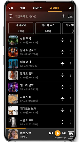 * 기분에 따라 재생목록을 만들고 노래를 추가하세요.
