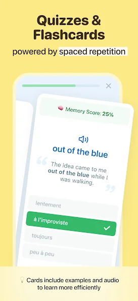 언어 학습은 재미 있고 유연하지만 전체 과정은 학습 전략과 통계를 통해 구조를 얻습니다. 언어 적 관심과 필요에 따라 학습 활동에 포함하려는 새로운 용어의 범주를 미세 조정할 수 있습니다. 학습 통계에서 진행 상황을 추적 할 수 있습니다.