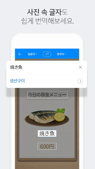 - 카메라 번역: 사진을 찍어 이미지상의 텍스트를 번역(25개 언어 지원).