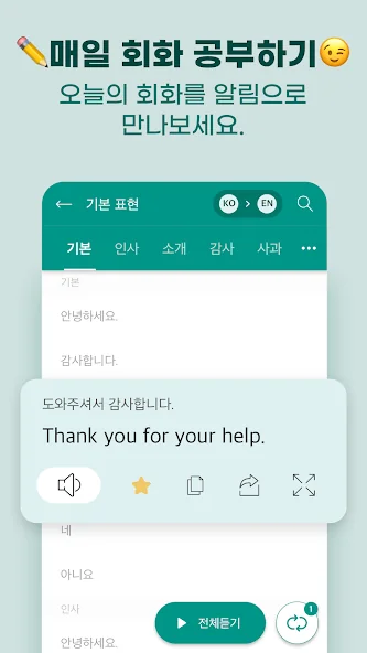 실제 사용 가능한 회화 위주로 알려드려요(회화 알림 기능 지원)